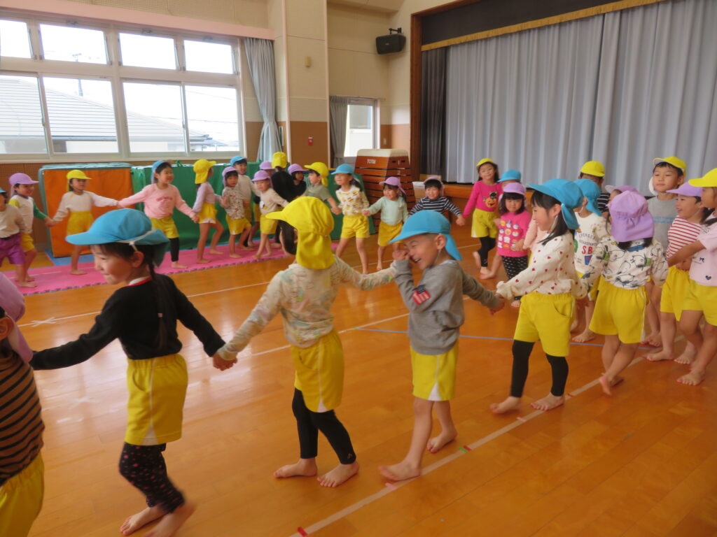 みんなで息を合わせて前に行ったり、後ろに行ったり…自然と笑顔になっていた子どもたちです(^^♪